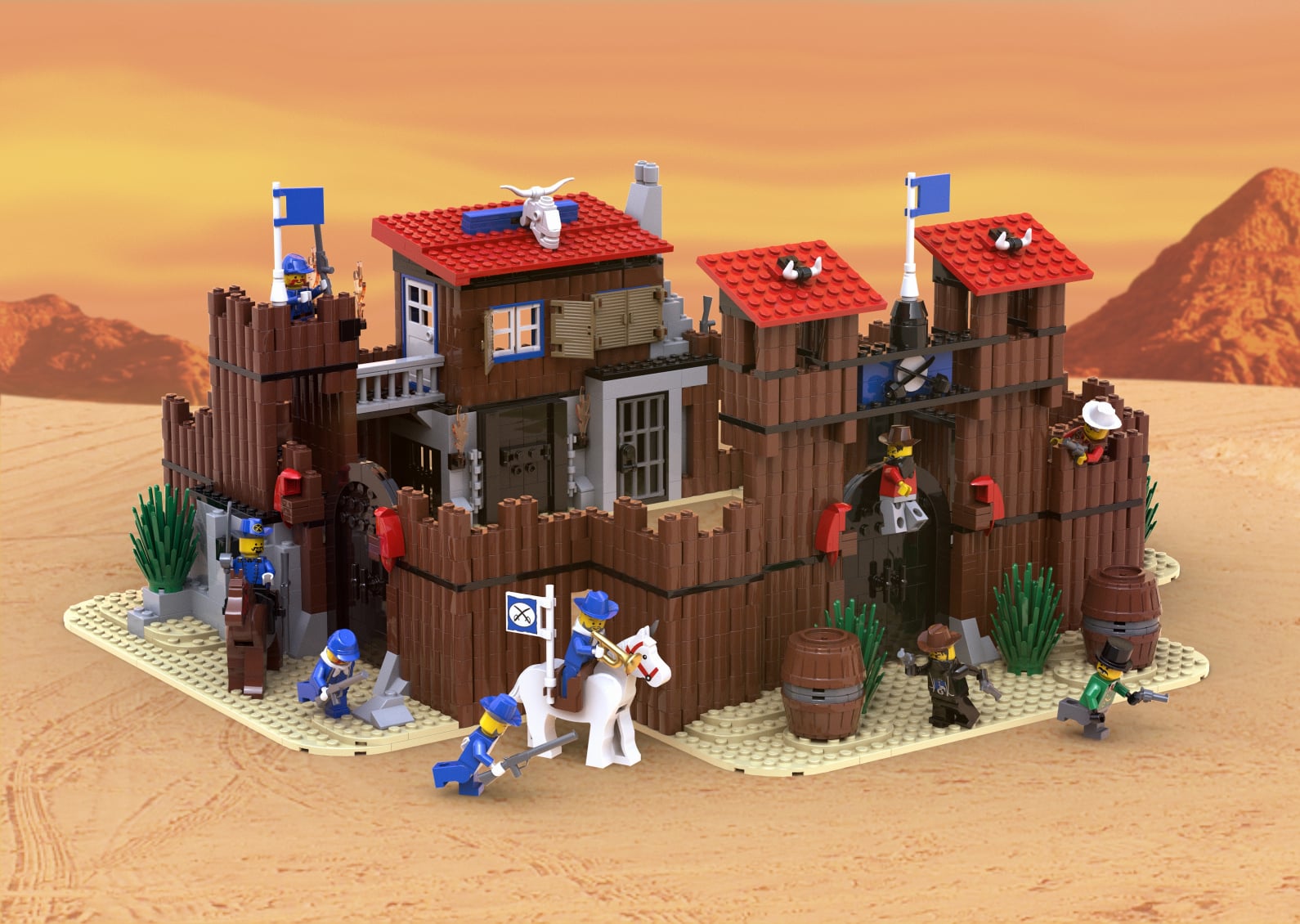 Digital instructions for a modern rebuild of the classic LEGO® Wild West Fort Legoredo (6769) using only contemporary parts.