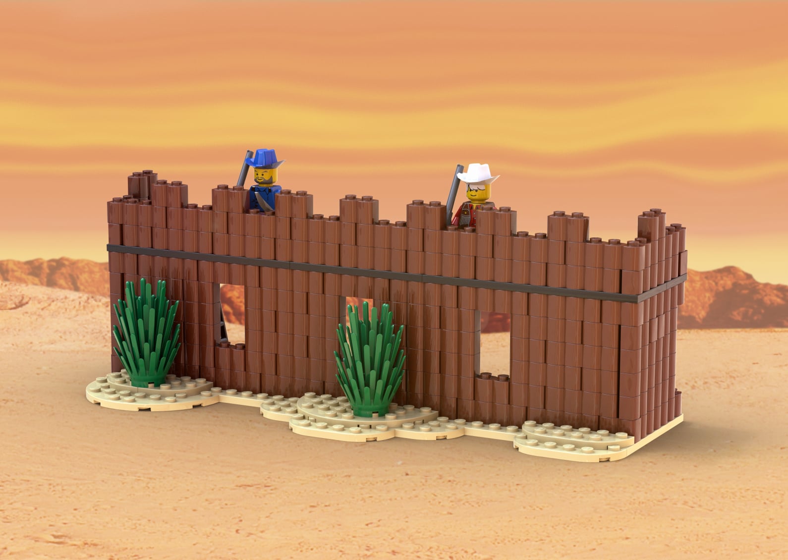 Made entirely with modern pieces and colors, avoiding stickers and hard-to-find vintage elements.Brick-built frontier