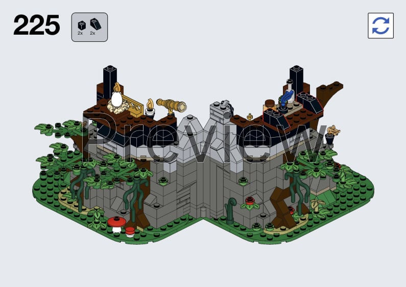 Digital instructions for a contemporary rebuild of Majisto’s Magical Workshop (40601), faithfully capturing the charm and character of the original 1993 LEGO® set.