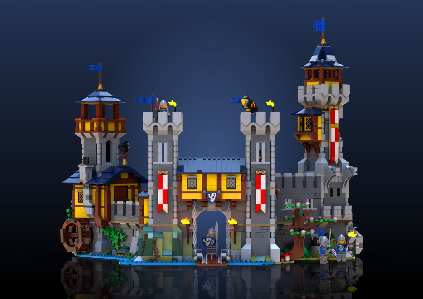 Digital instructions to turn two copies of the LEGO® Medieval Castle (31120) set into one larger display-worthy castle.